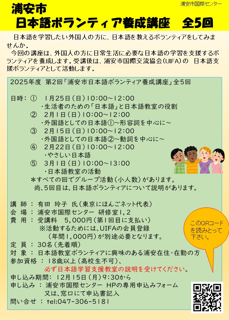 2025年度 第2回浦安市日本語ボランティア養成講座の開催について